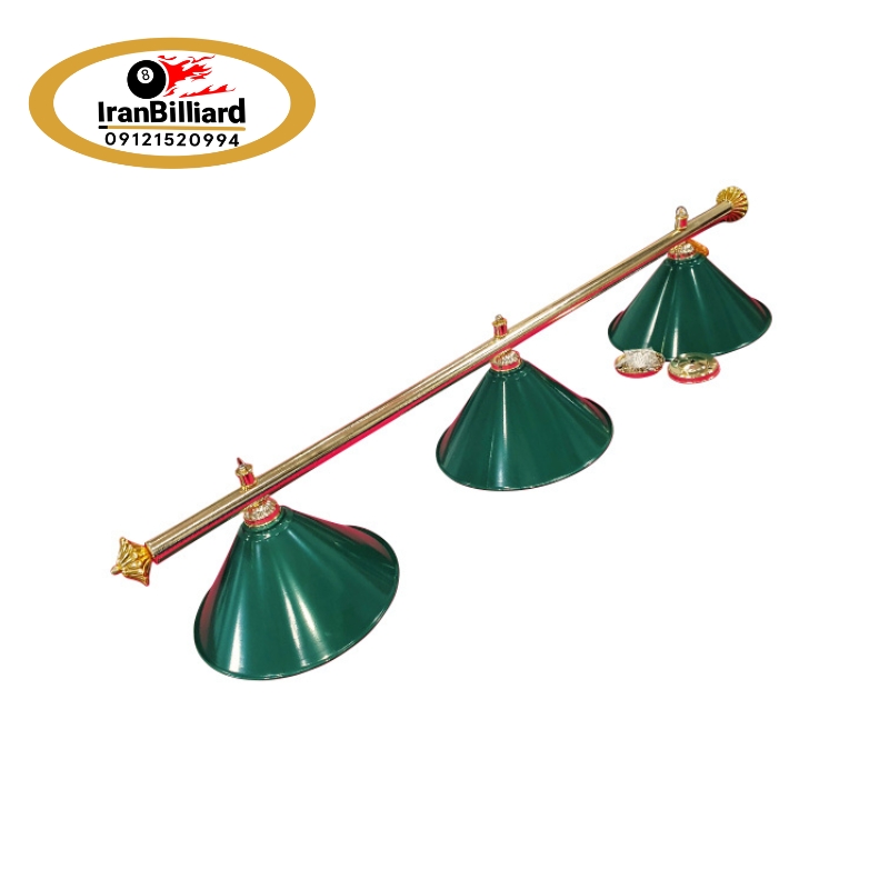 لوستر میز بیلیارد خارجی ۳ شعله با طراحی دقیق برای پخش نور یکنواخت، مخصوص میزهای بیلیارد ۷ تا ۹ فوت طراحی شده و علاوه بر کارایی، جلوهای زیبا به محیط باشگاه یا منزل میدهد.